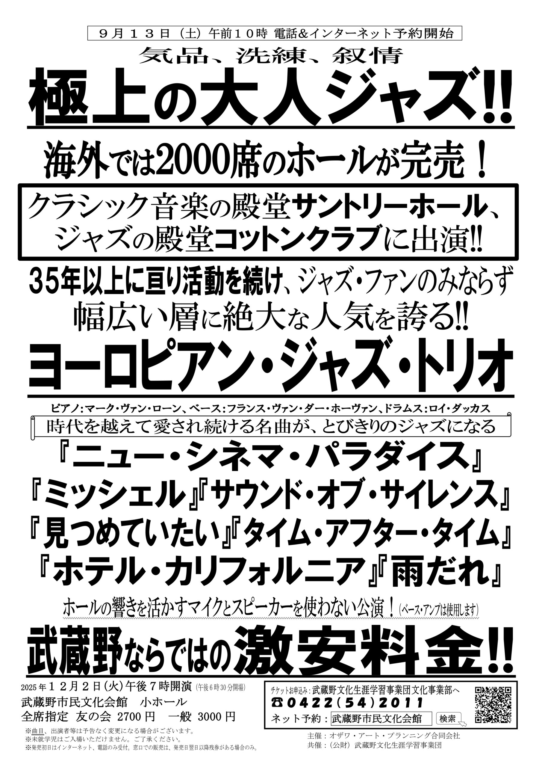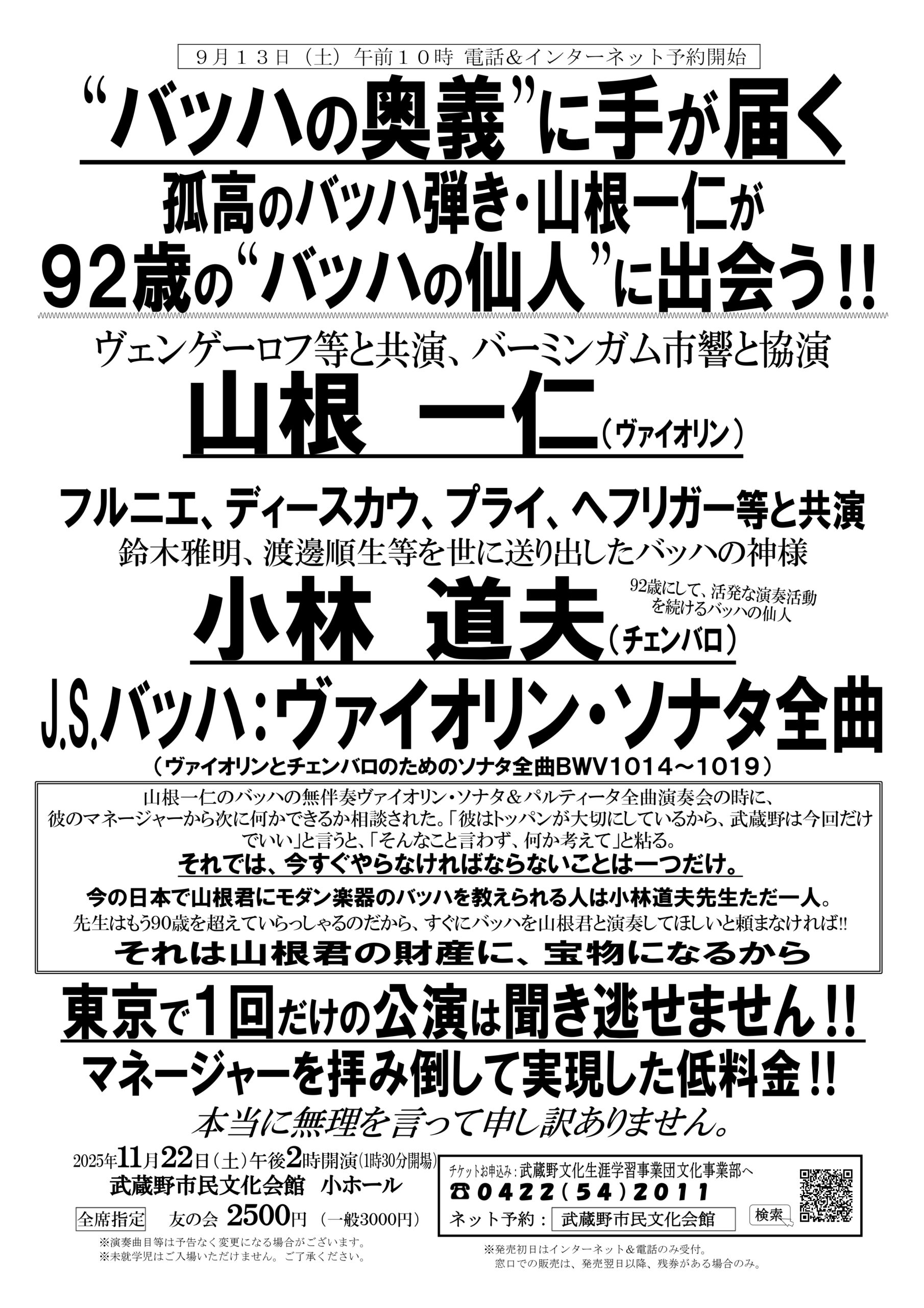 予定枚数終了 公演詳細を見る(武蔵野市民文化会館のサイトに遷移します) 公演詳細を見る(武蔵野市民文化会館のサイトに遷移します)