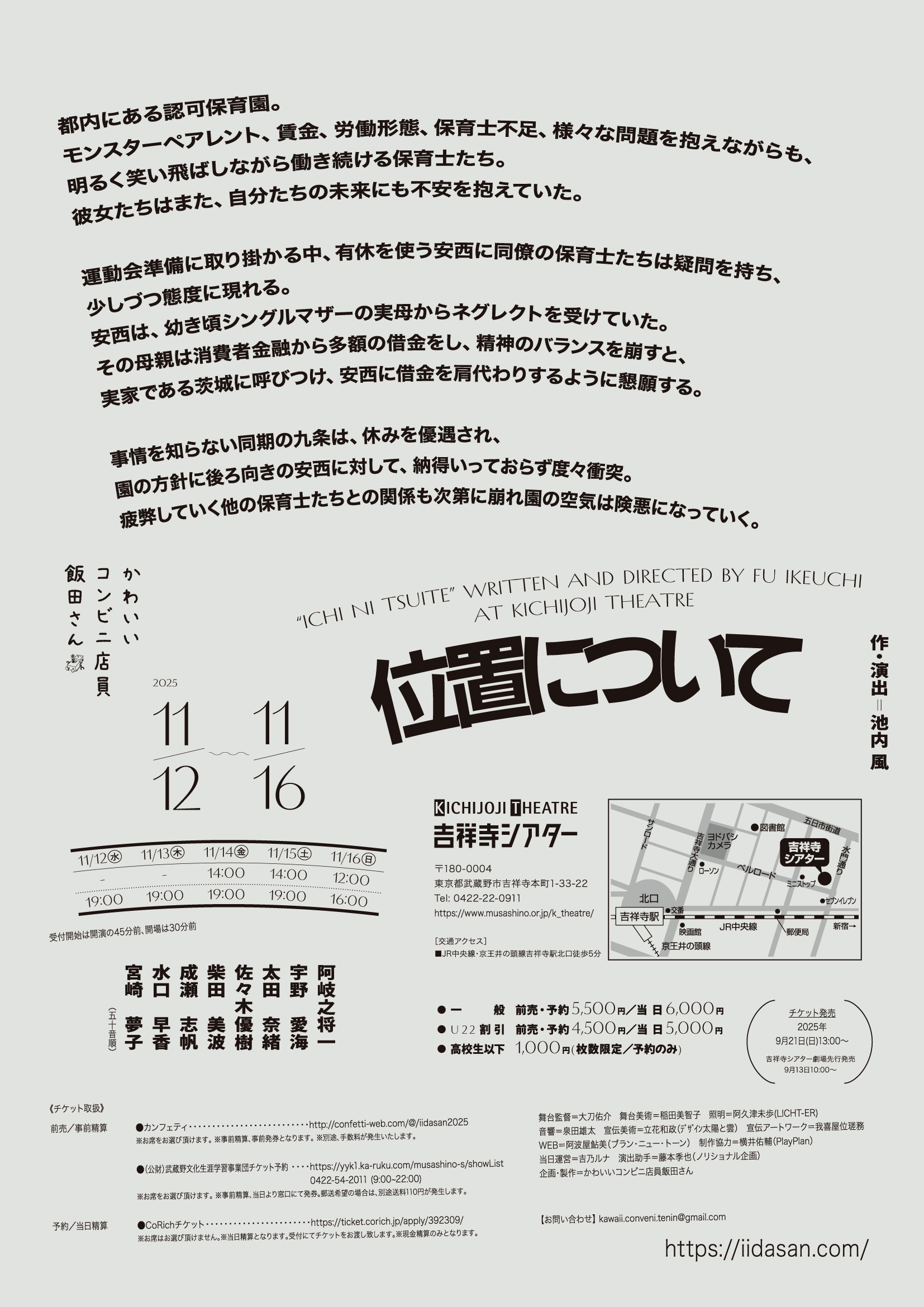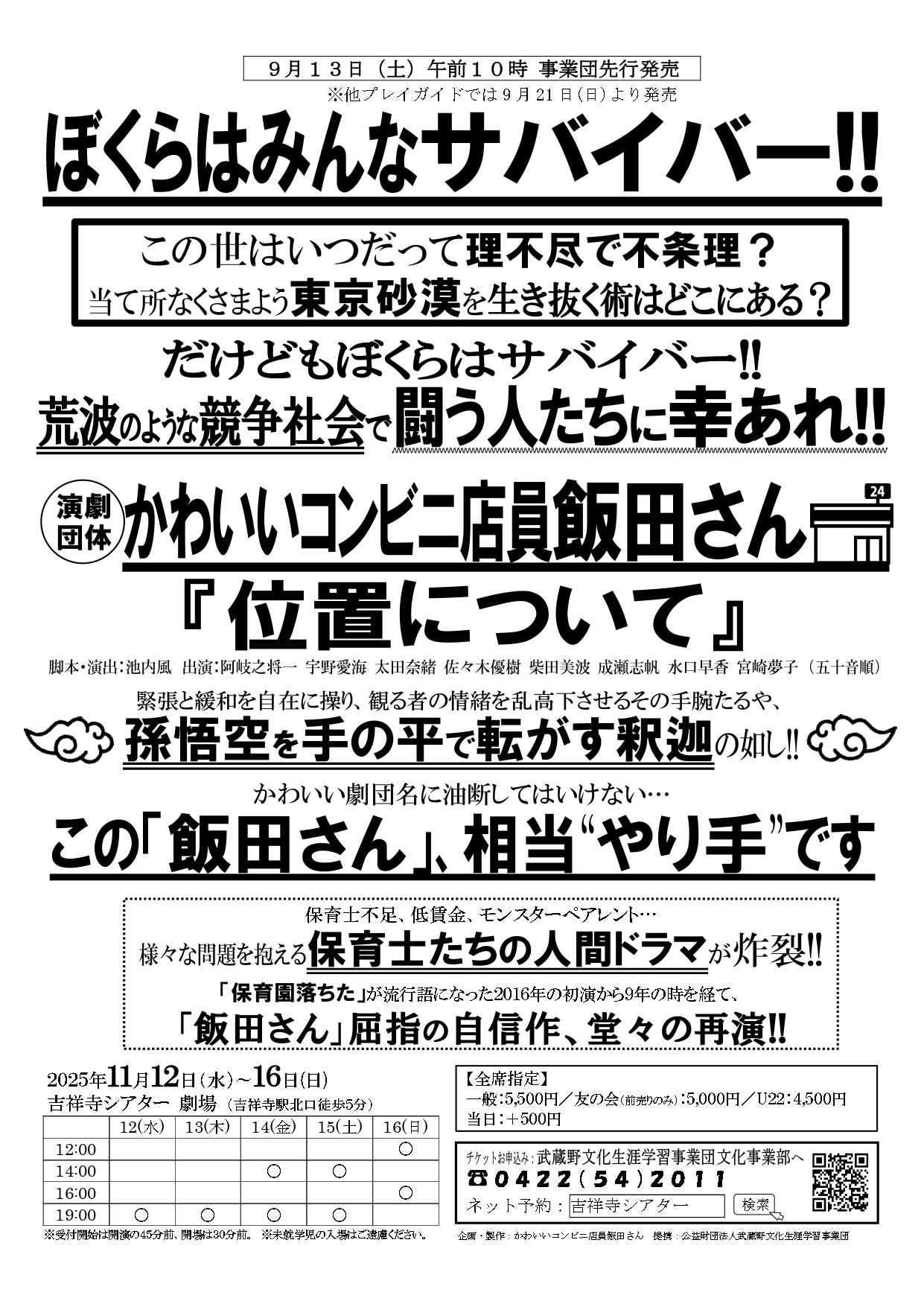 様々な問題に直面しながら現代社会を生きる人々の人間ドラマを描く、演劇ユニット「かわいいコンビニ店員飯田さん」が吉祥寺シアターに初登場!!