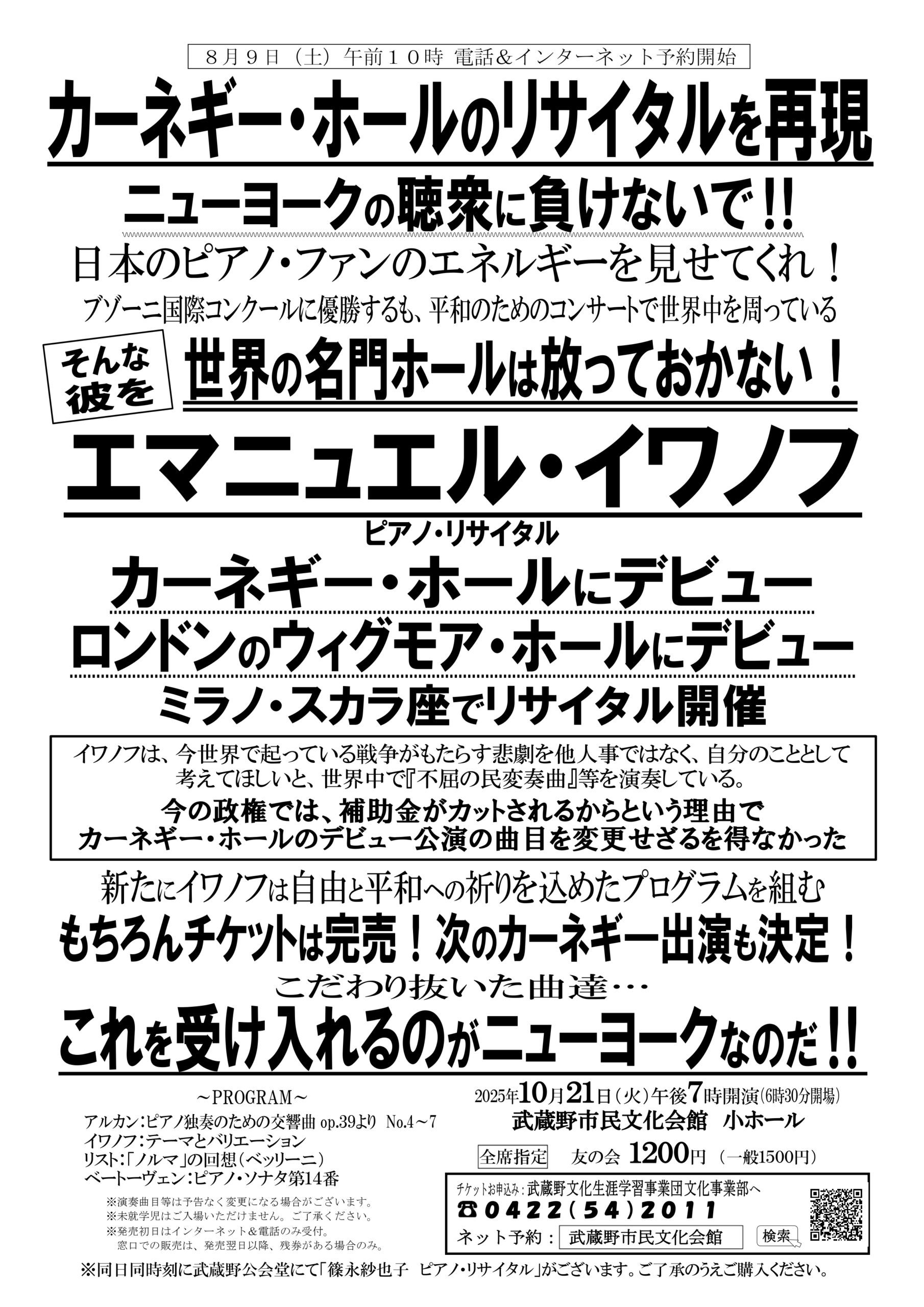 NY・カーネギーホールのリサイタルを武蔵野で再現!
