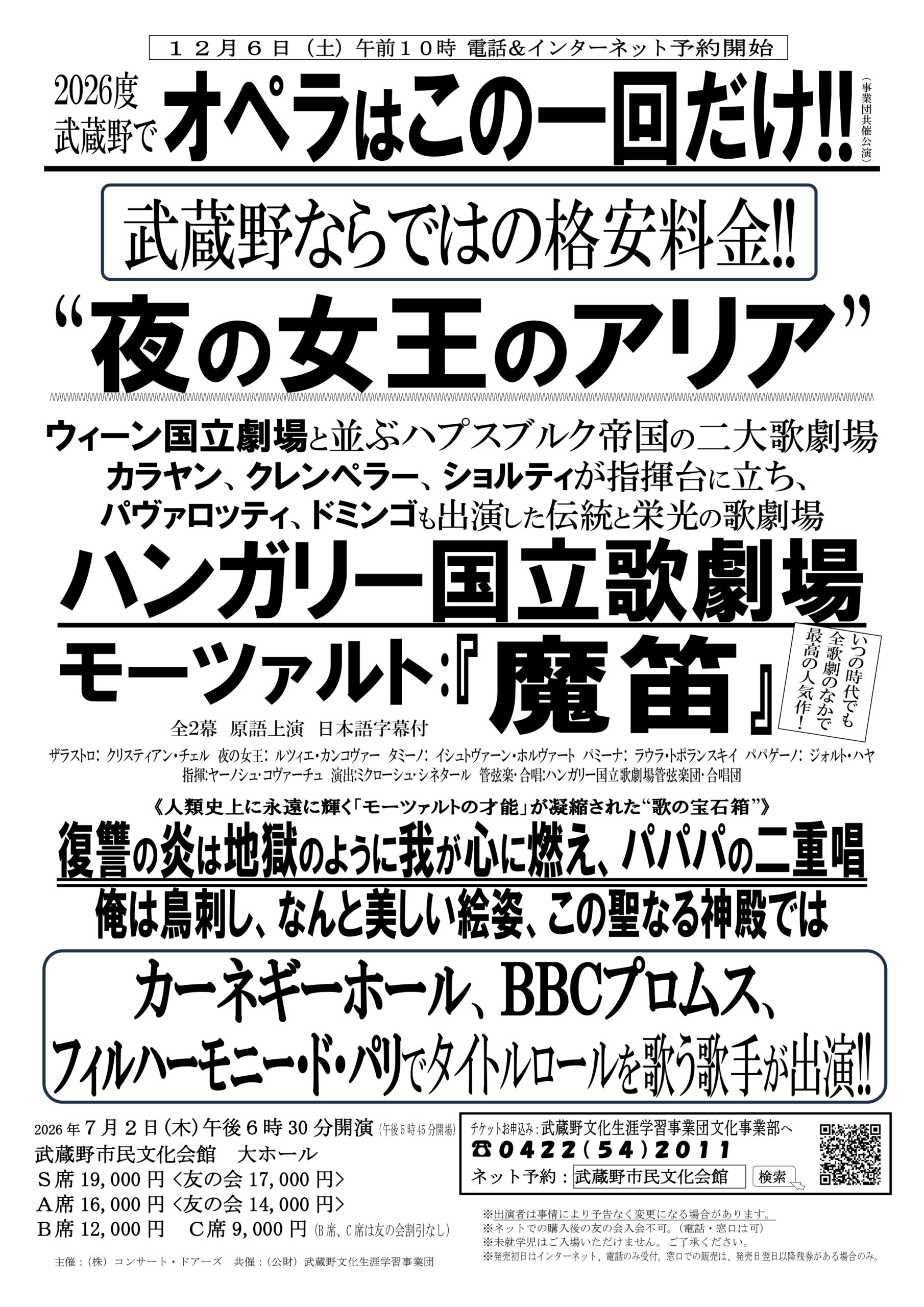 2026年度、武蔵野でオペラはこの一回だけ!なのだ!!