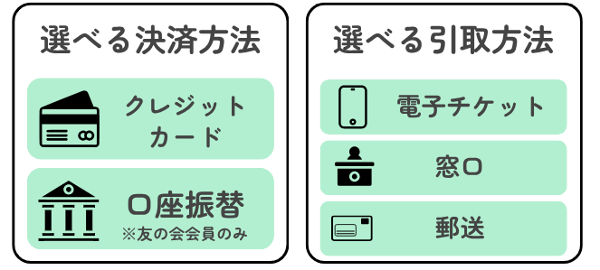 ※お支払方法はクレジットカード決済、またはアルテ友の会会員で、事前の口座登録がお済の方は口座振替が選択できます。