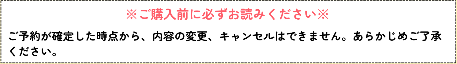 ご予約が確定した時点から、内容の変更、キャンセルはできません。あらかじめご了承ください。